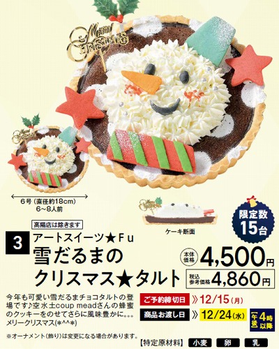 アートスイーツ★Fu 雪だるまのクリスマス★タルト【店舗受取】