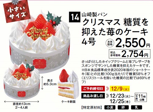 山崎製パン クリスマス 糖質を抑えた苺のケーキ 4号