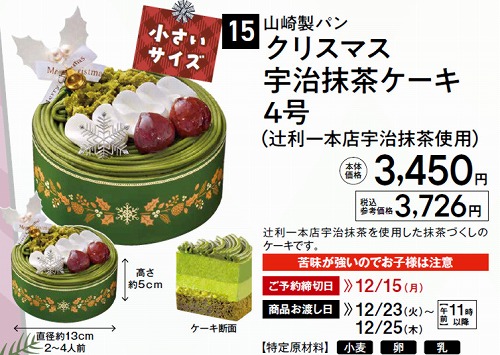 山崎製パン クリスマス 宇治抹茶ケーキ 4号(辻利一本店宇治抹茶使用)