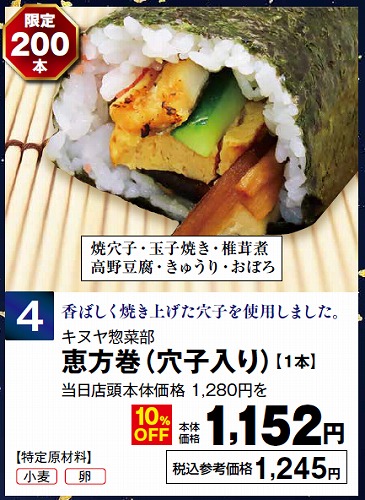【具材】 焼穴子、玉子焼き、椎茸煮、高野豆腐、きゅうり、おぼろ