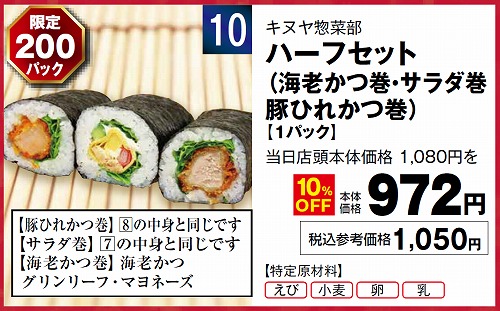 ハーフセット(海老かつ巻・サラダ巻・豚ひれかつ巻)